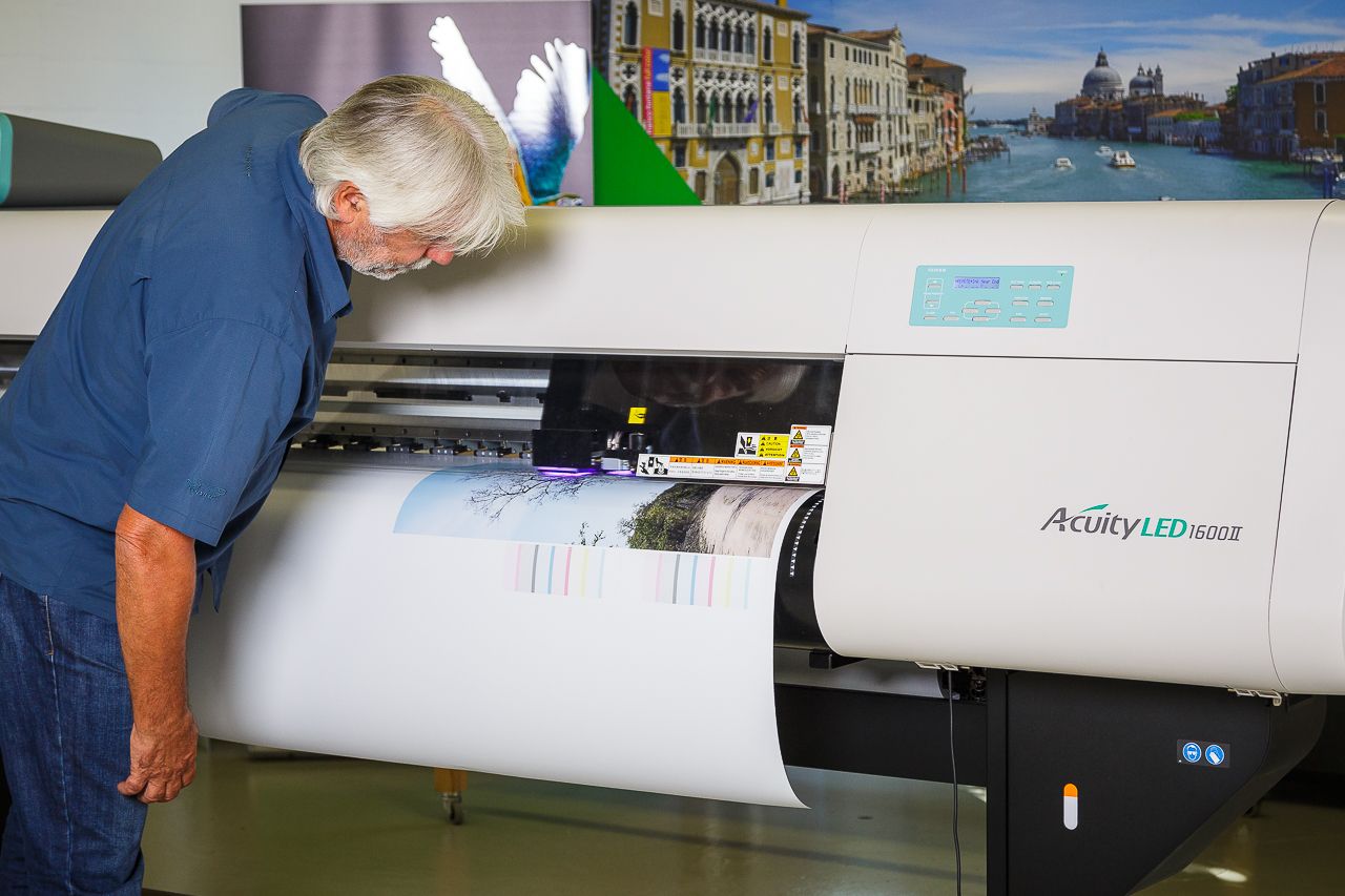 Kann Rollenmedien oder starre Bedruckstoffe bis zu einer maximalen Druckbreite von 1,6 m aufnehmen